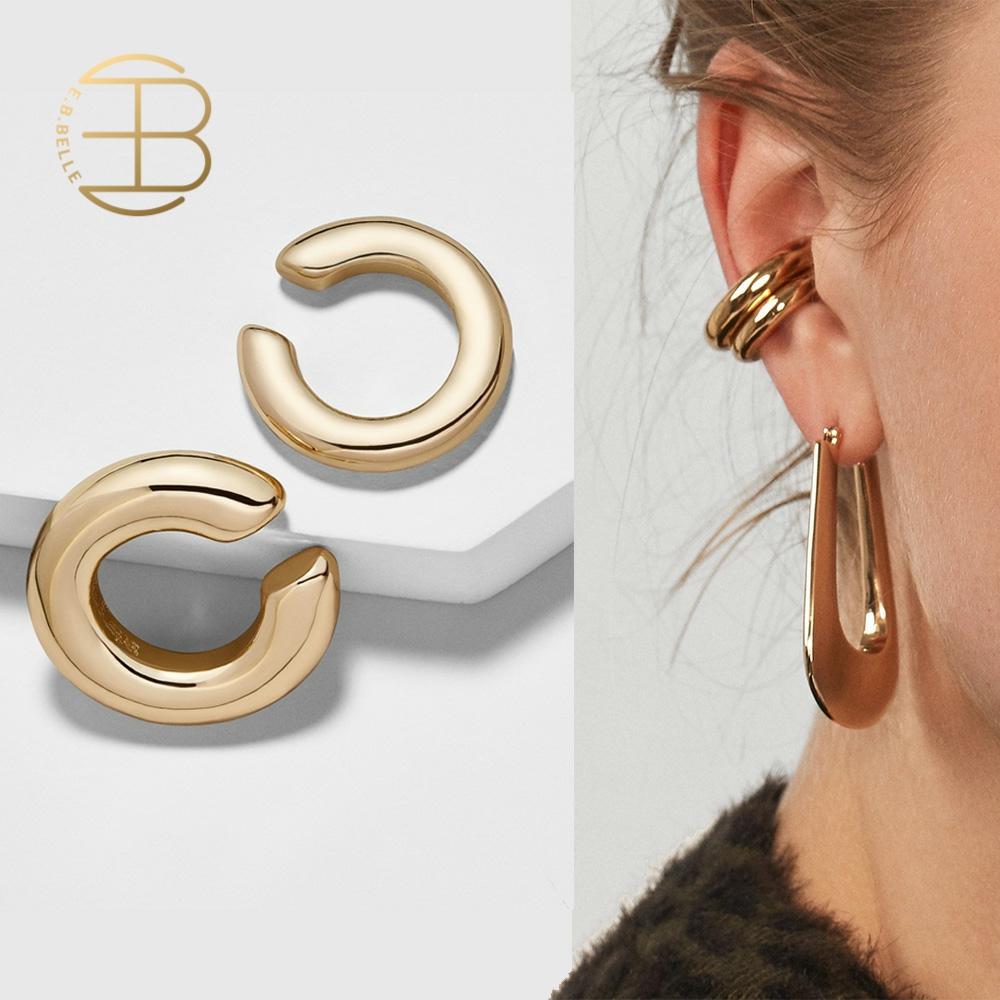 2pcs/set 2019 New Design Gold Color Small and Big clip earrings without piercing Women’s All Match Round Ear Cuff Clip Earring