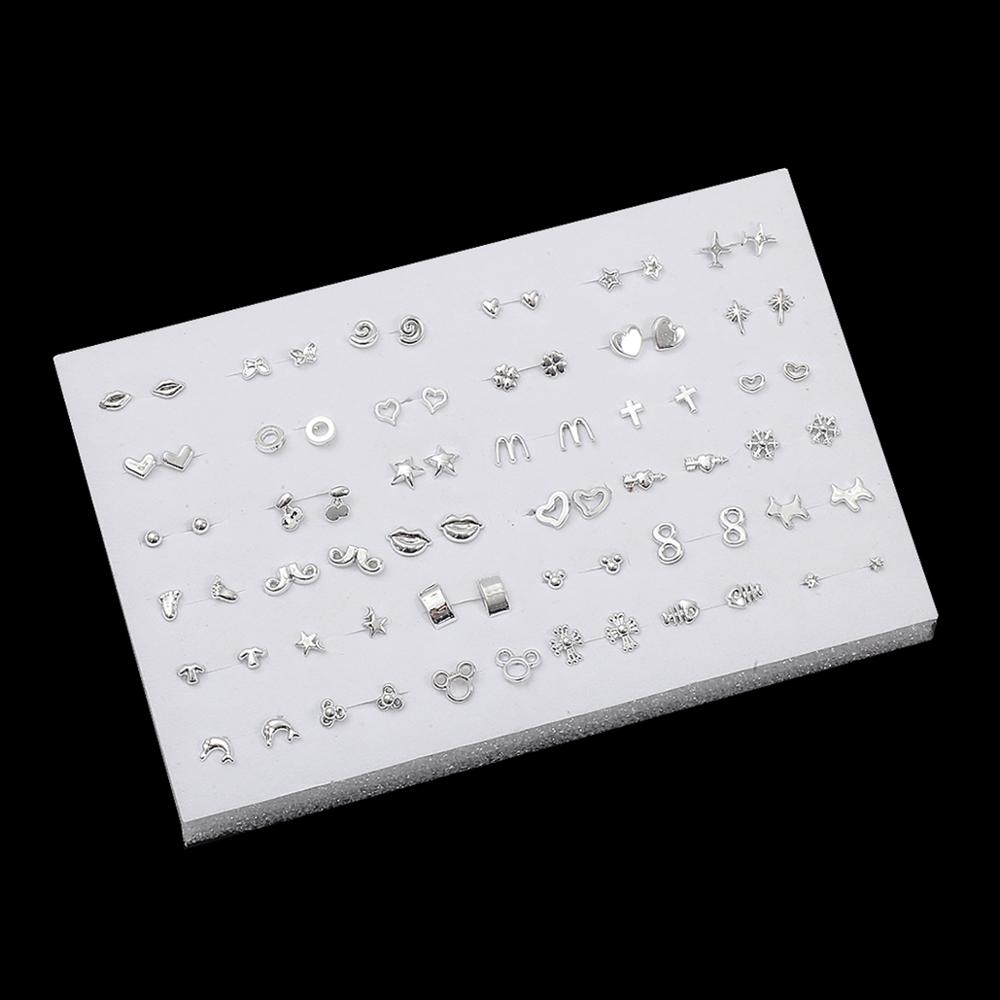 36Pairs Randomly Mixed Silver Color Women Butterfly Bowknot Flower Heart Small Plastic Stud Earrings Sets For Girl Jewelry Party