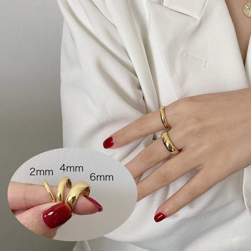 Classic Wedding Ring for Women Smooth Gold Color Stainless Steel Engagement Jewelry 2mm 4mm 6mm 8mm