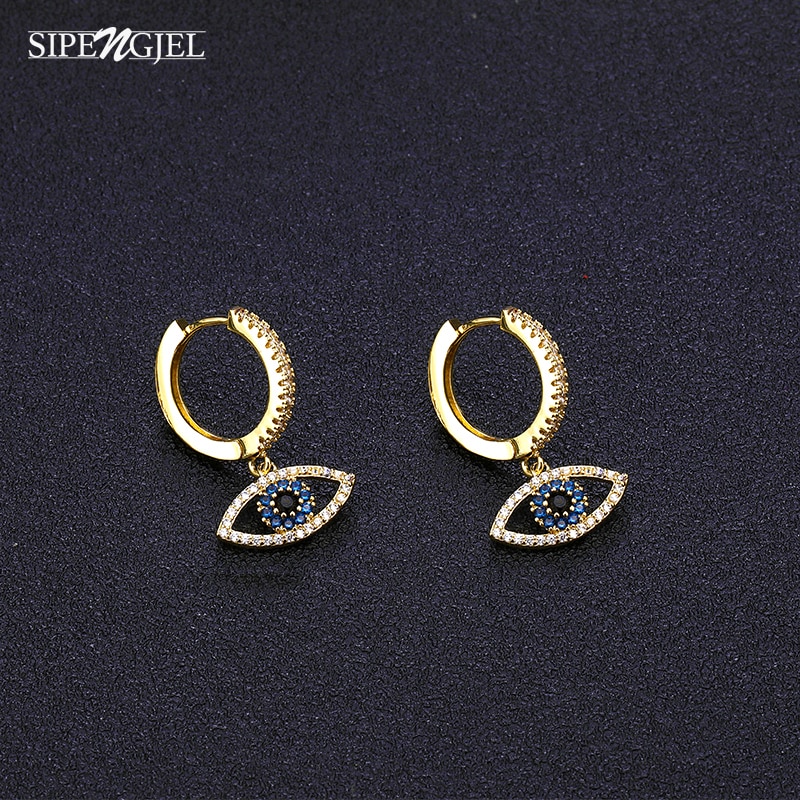 Fashion Gold Color tiger Eye Hoop Earrings Top Quality Blue Crystal Eye Earrings For Women Man Korean Fashion Jewelry 2020
