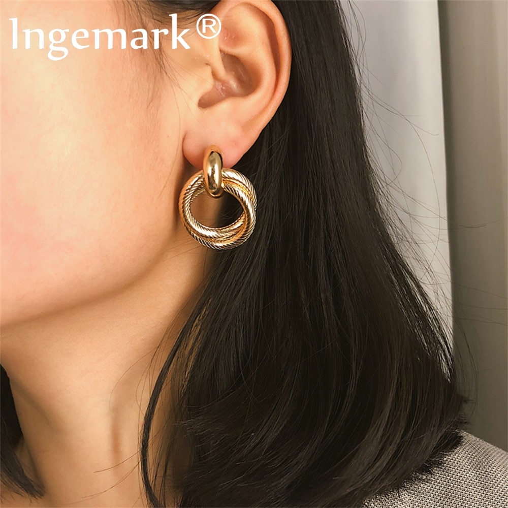 Ingemark Punk Big Double Circle Drop Earrings for Women Korean Fashion Metal Geometric Round Brincos Earrings 2019 Jewelry Gifts