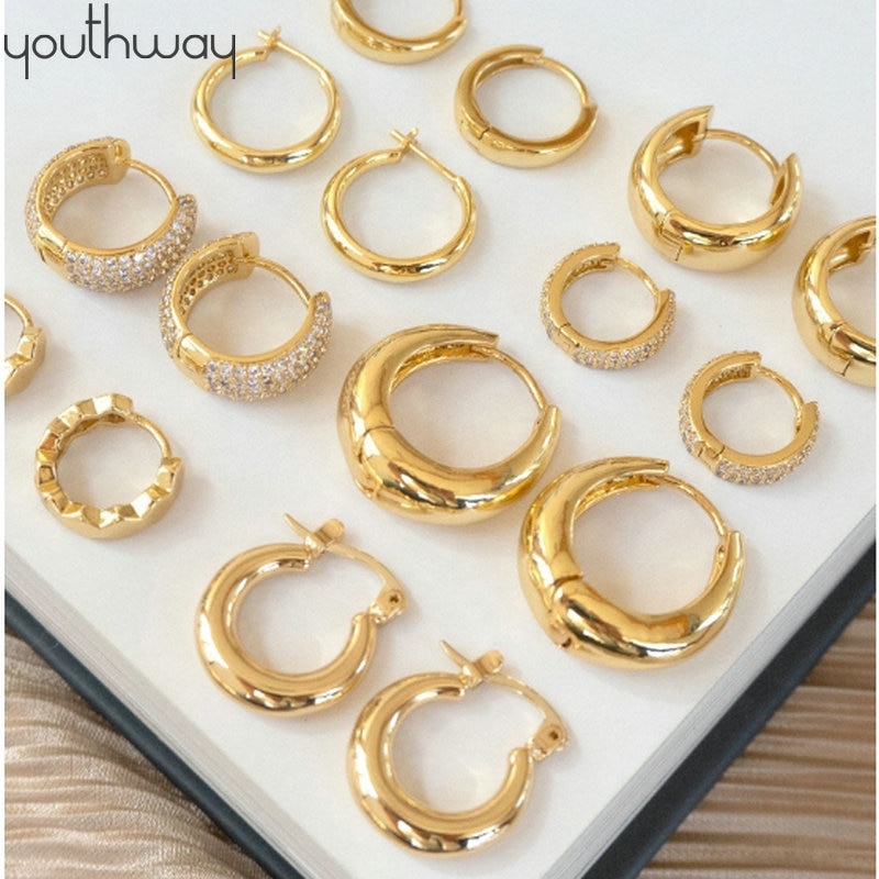 INS Gold Color Brass Hoop Huggies Earrings Small Large Circle Hoops CC Shape Statement Earrings Women Girls Unique Metal Jewelry