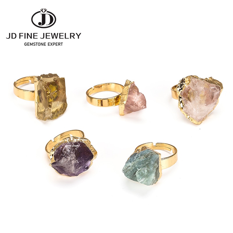 JD Purple Quartz Adjustable Ring Irregular Natural Rough Stone Crystal Druse Jewellery Women No Finger Size Limited Gold Color