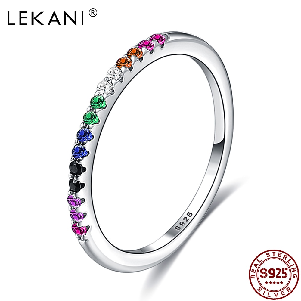 LEKANI Rainbow Color Finger Silver Rings For Women And Girls Wedding Sterling Silver 925 Ring Fine Jewelry Gifts For Friends