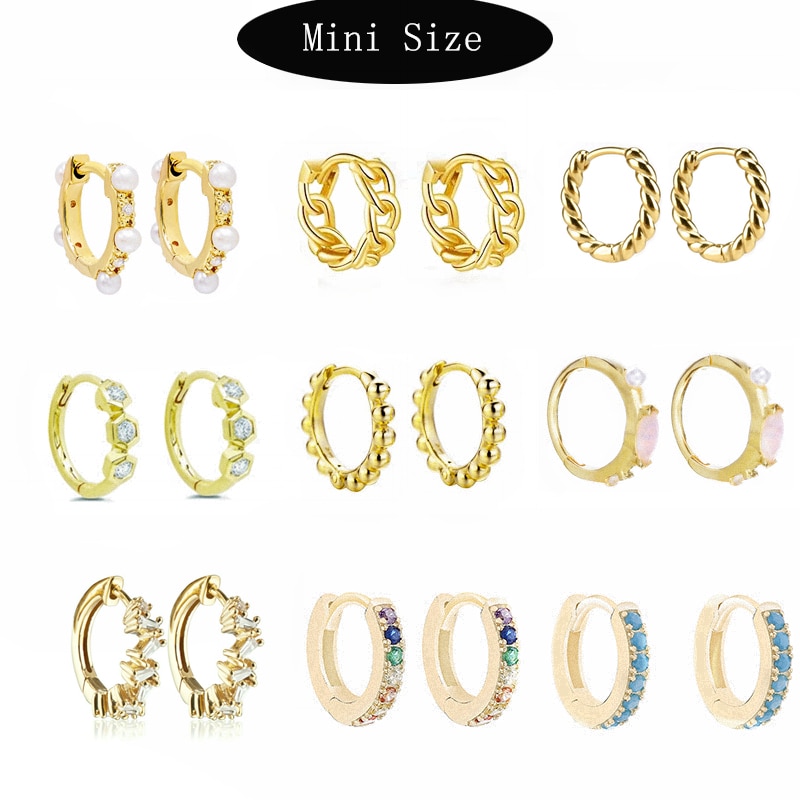 Moonmory 2020 100% Real 925 Sterling Silver Huggie Hoop Earrings With Stones Rainbow Spike Earrings With CZ For European Women