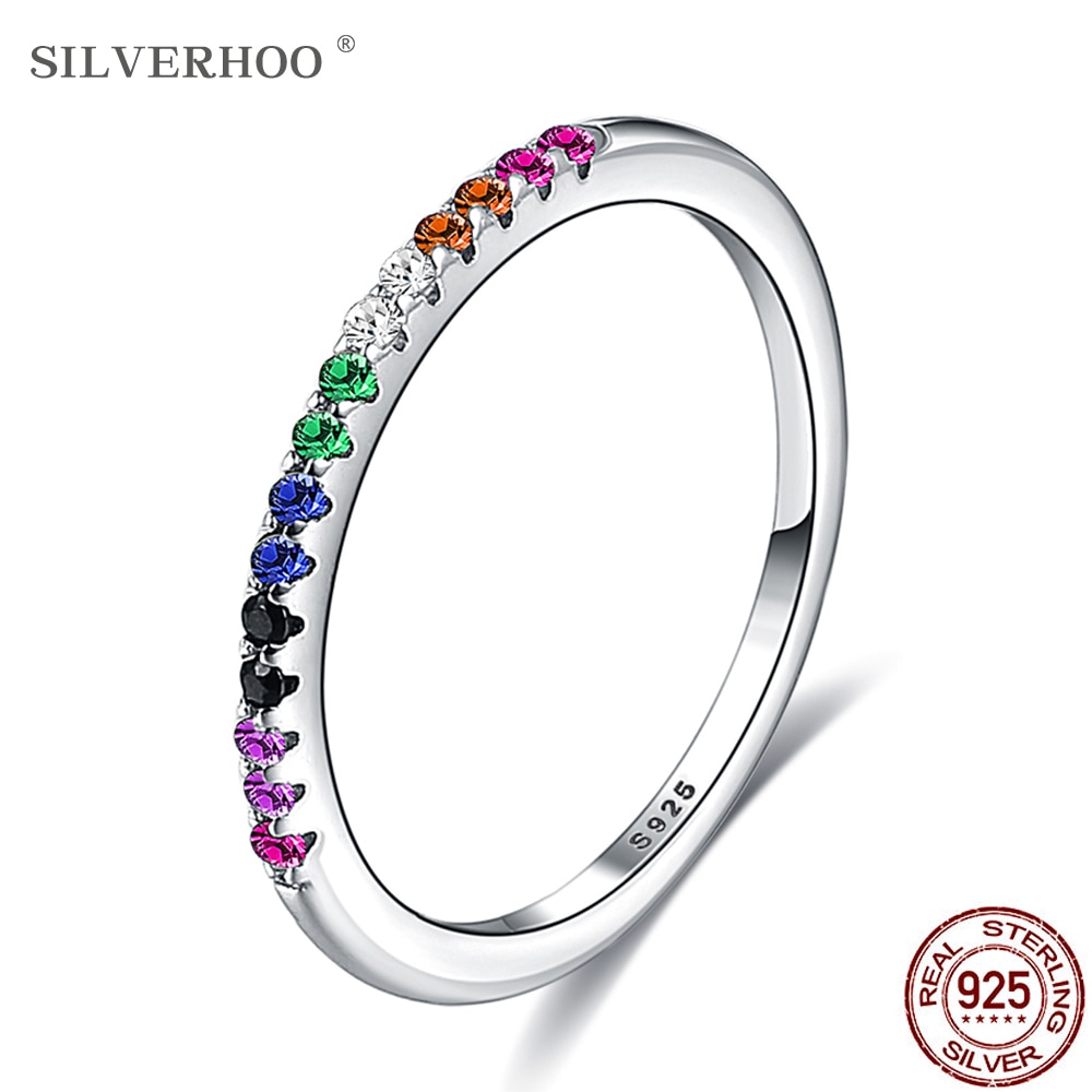 SILVERHOO Ring Rainbow Color Finger Rings for Women Stackable Match Wedding Sterling Silver 925 Jewelry Give Gifts For Friends