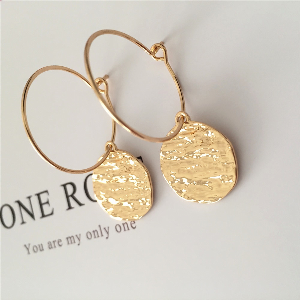 Simple Designed Hoop Earrings Gold Color Water Surface Round Disk with Thin Hoop Earrings for Women Casual Wearing