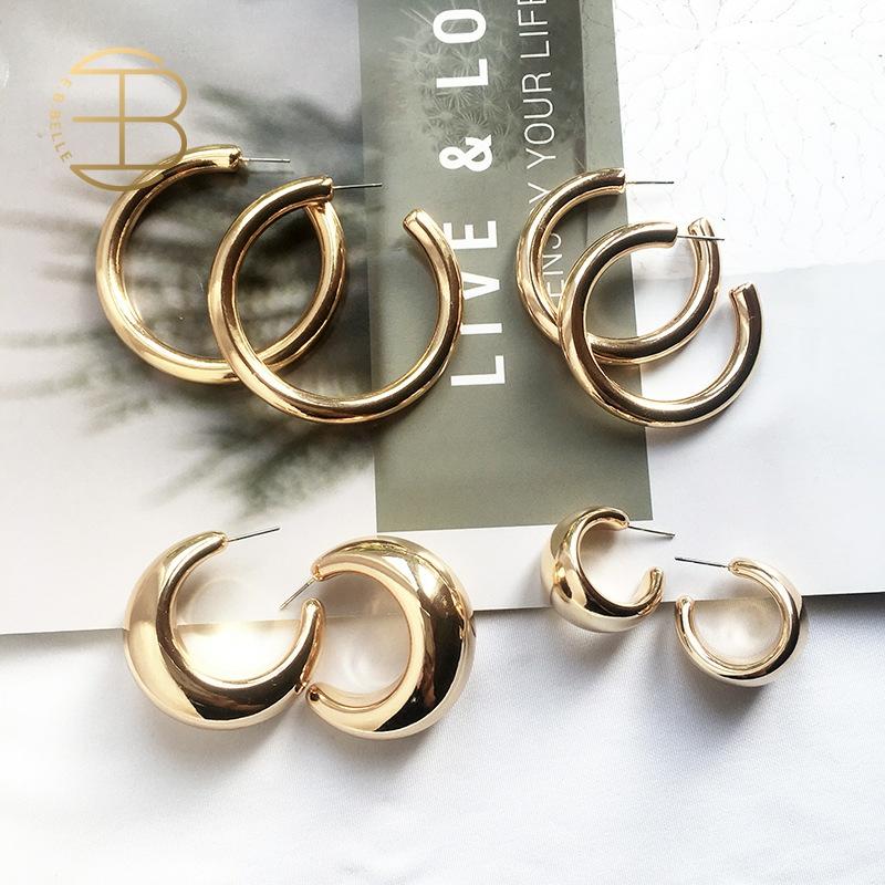 Street Style CC Hoop Chunky Gold Small Big Hoop Earrings For Women Punk Metal Gold Circle Earrings