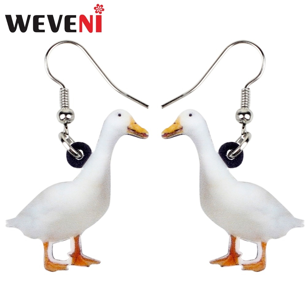WEVENI Acrylic Snowy Duck Quacker Fowl Earrings Big Long Dangle Drop Novelty Farm Animal Jewelry For Women Girls Teens Wholesale