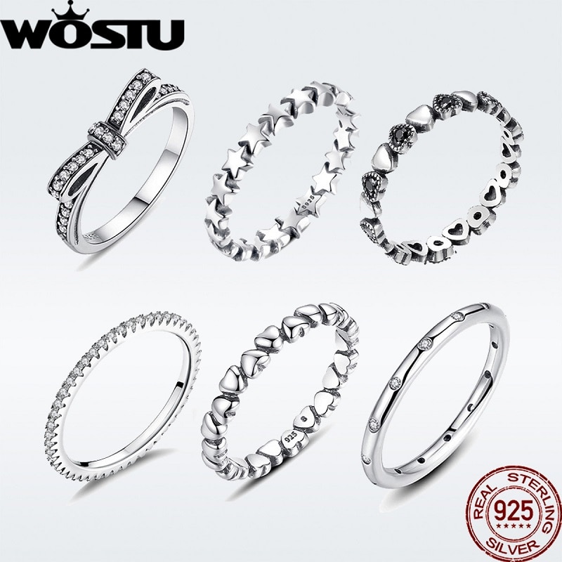 WOSTU Hot Sale 925 Sterling Silver Rings For Women European Original Wedding Fashion Brand Ring Jewelry Gift