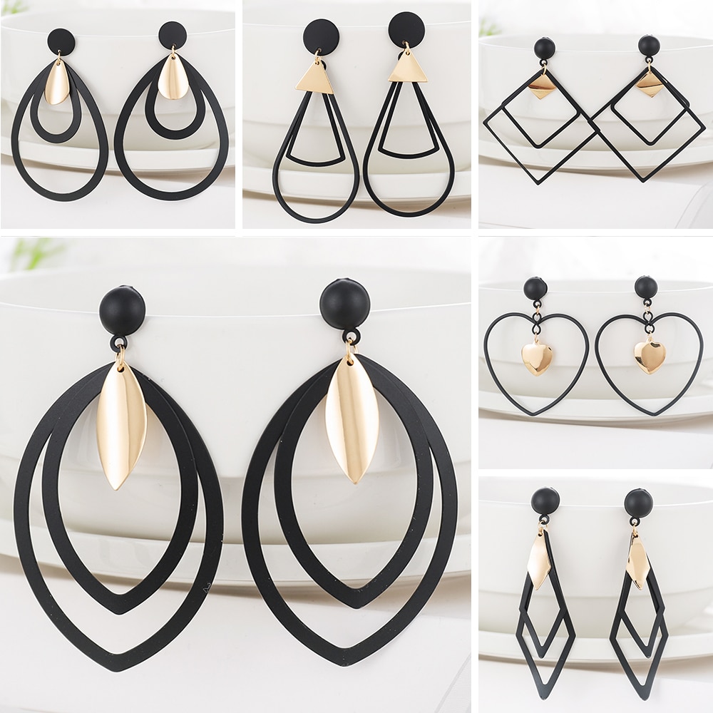 WYBU Summer Style Golden Black Circle Drop Earrings Star Hollow Water Drop Earing Triangle Jewel Alli Express Brinco Bijouterie