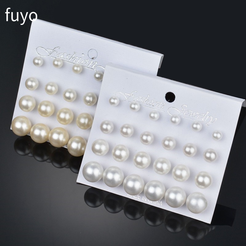 12 pairs White Simulated Pearl Earrings Set For Women Jewelry On Ear Ball Stud Earrings kit Bijouteria brincos Bijoux