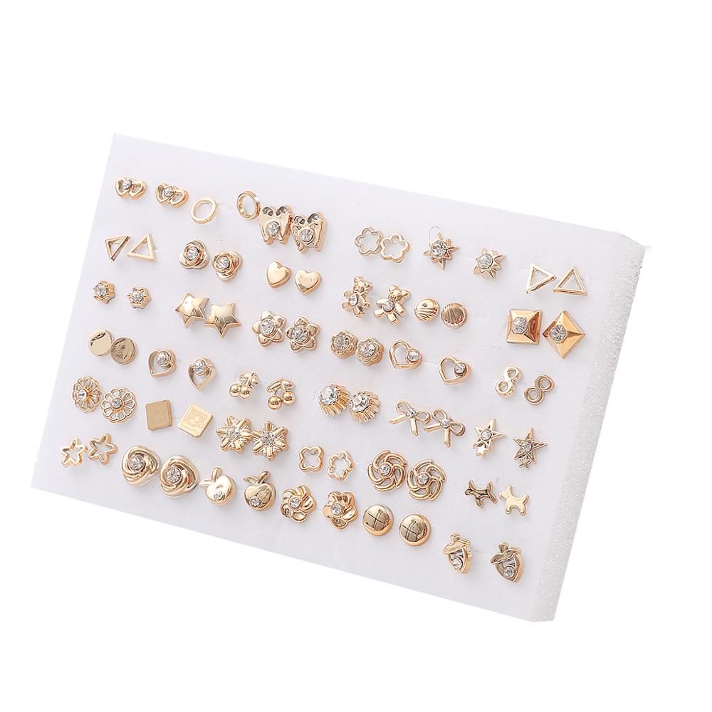 18/36pairs Fashion Mix Style Gold Color Rhinestone Crystal Flower Stud Earings Set For Women Girls Jewelry Brincos Oorbellen