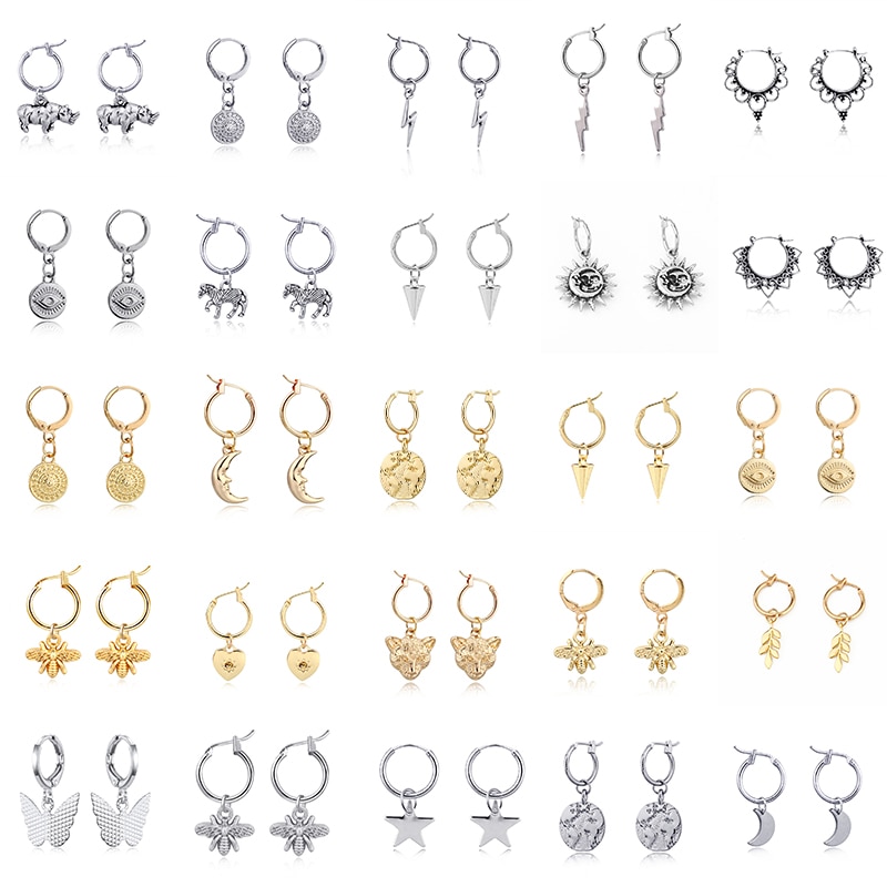 1Pair 30Styles New Mini Bee Leopard Moon Map Hoop Earrings For Women Cute Butterfly Horse Animal Circle Earrings Jewelry Gift