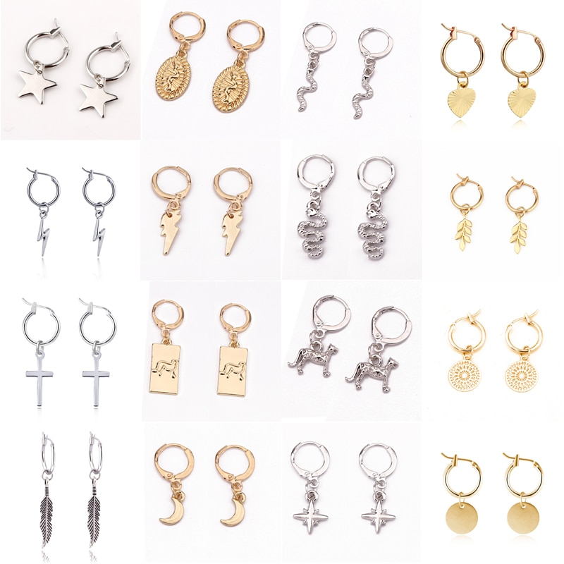 1Pair Trendy Cute Heart Lightning Star Hoop Earrings For Women Punk Snake Cross Hollow Round Endless Circle Earrings Jewelry