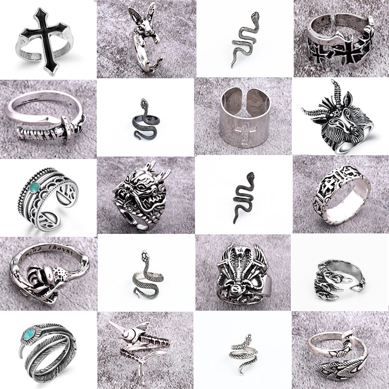 1PC Hot Punk Gothic Snake Cross Male Ring Hip Hop Vintage Metal Animals Feather Dragon Free Open Ring Women Men Jewelry Bijoux