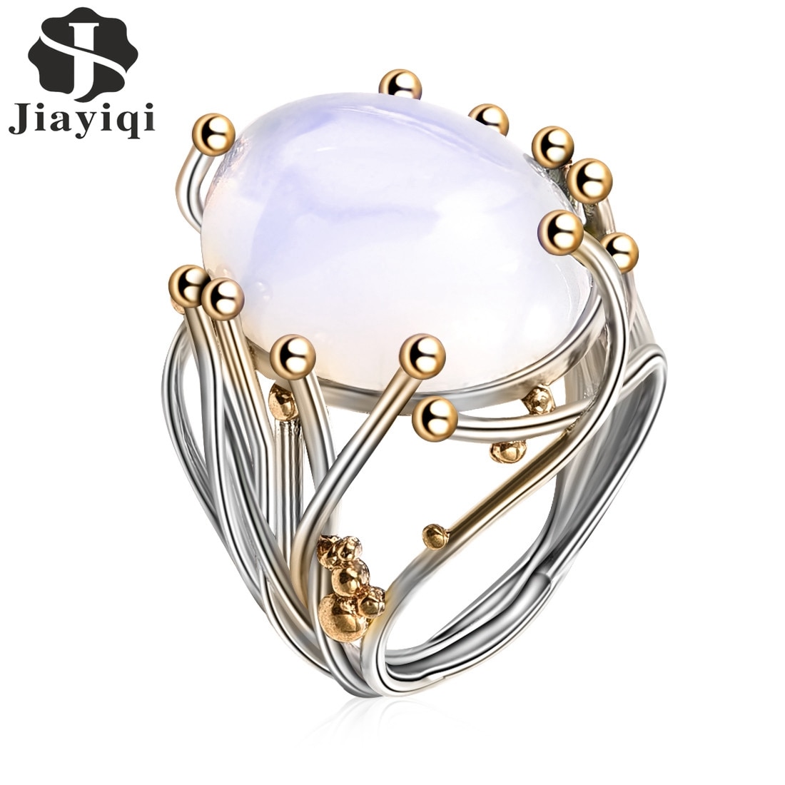 2018 Vintage Silver Color Natural Moonstone Ring White Opal Vine Rings For Women Wedding Jewelry
