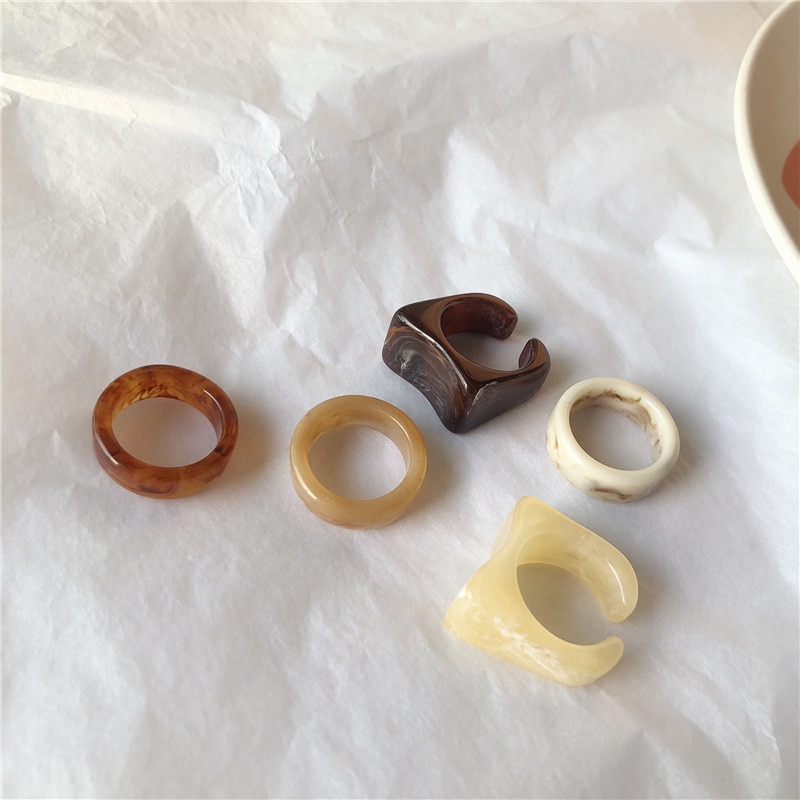 2019 New Vintage Fashion Printing Grain Resin Ring Square Cool Wind Ring Wide Ivory Color Acrylic Rings For Girl Jewelry Gift