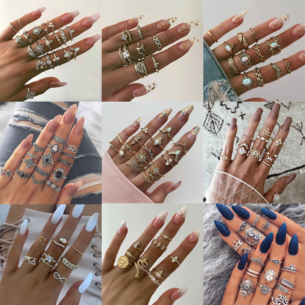 22Styles Vintage Rings Set For Women Boho Moon Star Knuckle Finger Ring Female Bohemian Gold Silver Color Jewelry Accessories