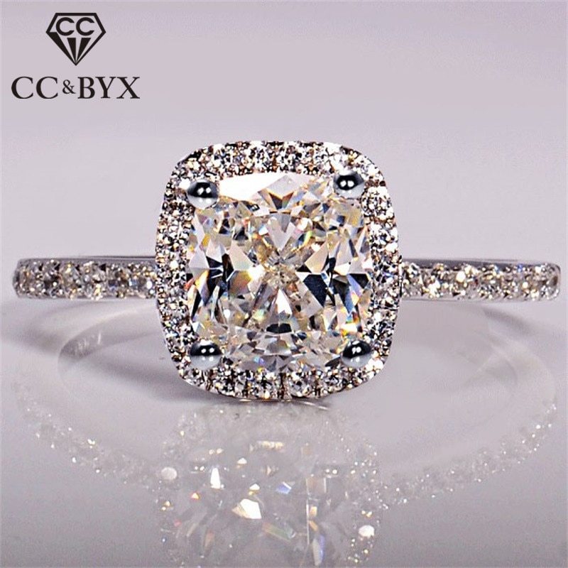CC Jewelry Fashion Sterling 925 Silver Rings For Women Jewelry Simple Design Square Bridal Wedding Engagement Ring Bijoux CC631