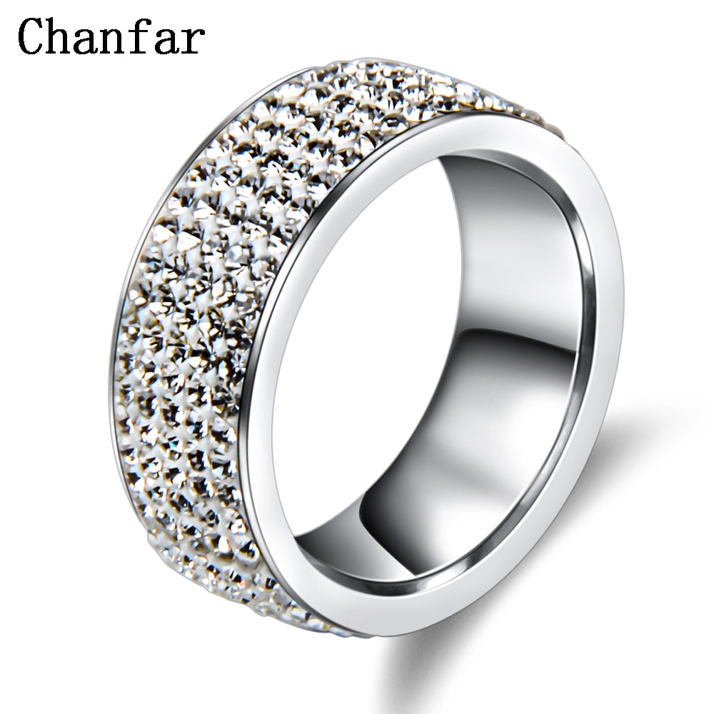 Chanfar 5 Rows Crystal Stainless Steel Ring Women for Elegant Full Finger Love Wedding Engagement Rings Jewelry Men