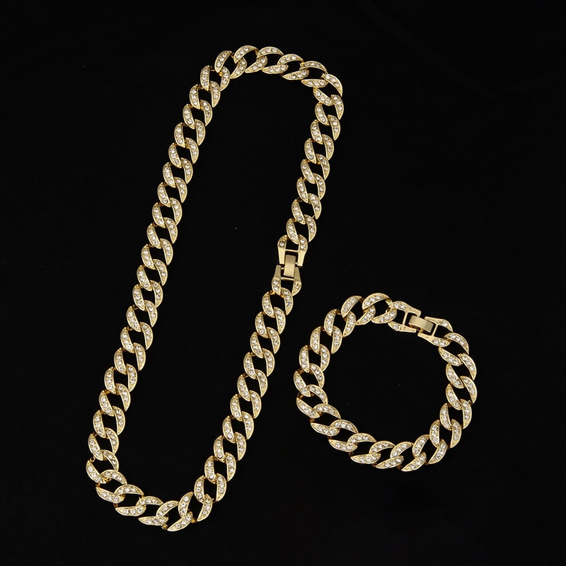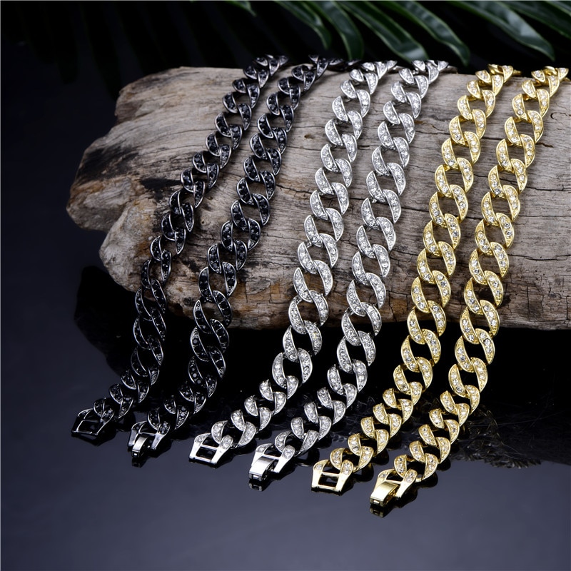13mm Miami Link Chain Necklace Men Rhinestone Shiny Ice Out Cuban Bracelet Gold Color Choker Necklace Set Hip Hop Jewelry