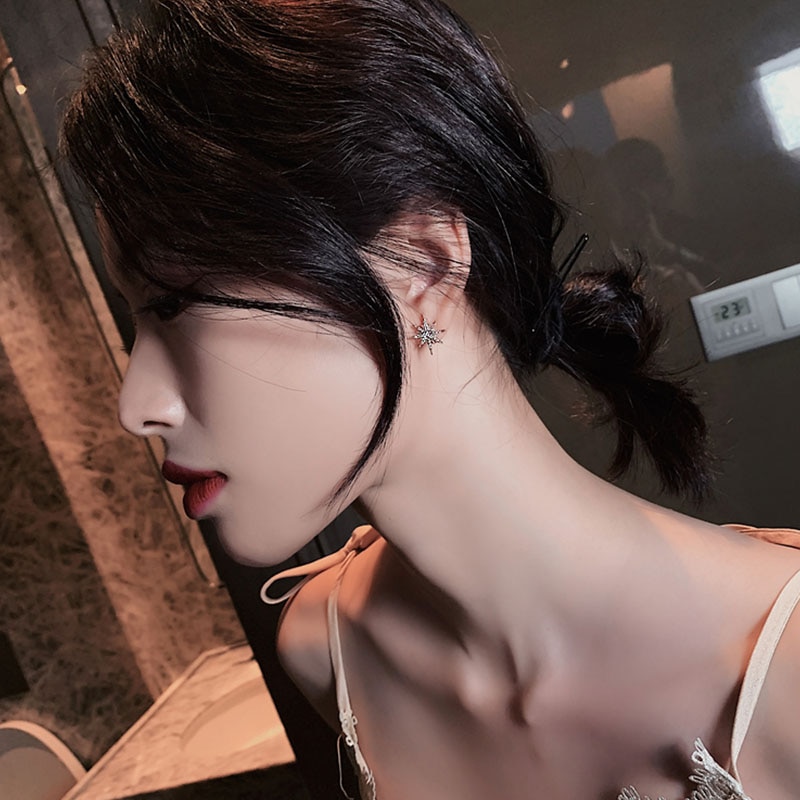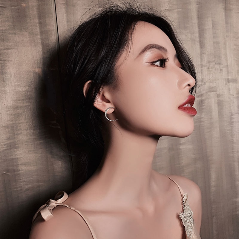 2020 new star moon earrings Korean version asymmetrical high sense earrings fashion earrings Prevent Allergy exquisite ear nail