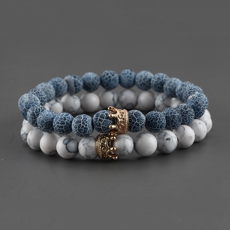2pcs Charm paired Bracelet for Men gold Crown Women’s Bracelets Natural Stone Beads Wristband Boho Couple Bracelet Gifts Friends