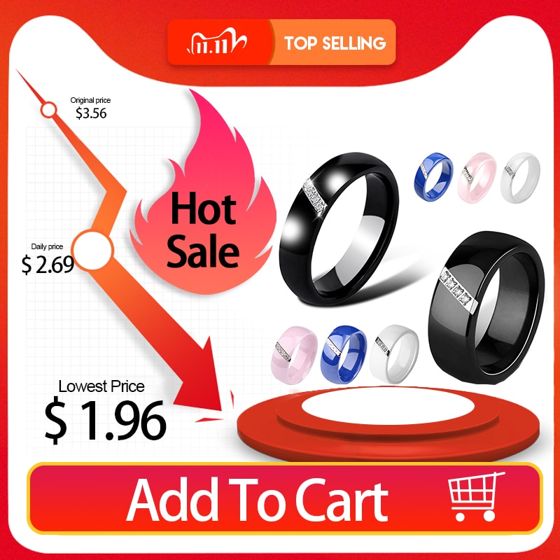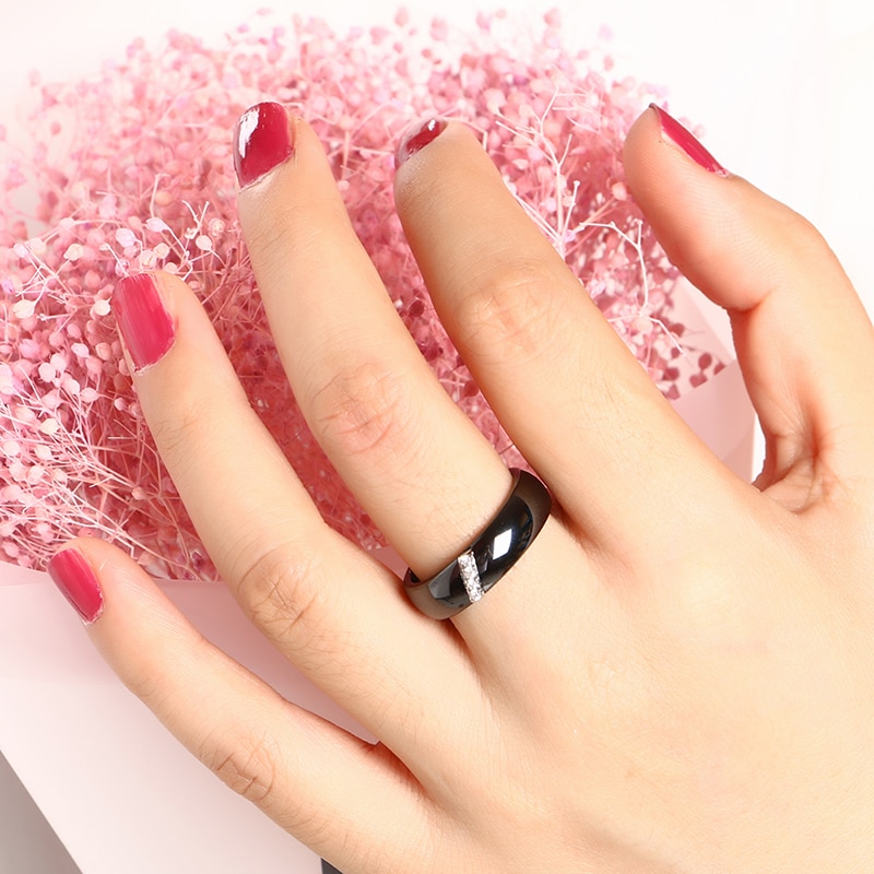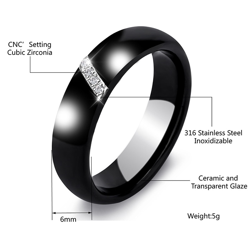 6mm Ceramic Rings Women Classic Black White Rings Smooth Comfort India Stone Crystal Jewelry Fashion Wedding Engagement Ring