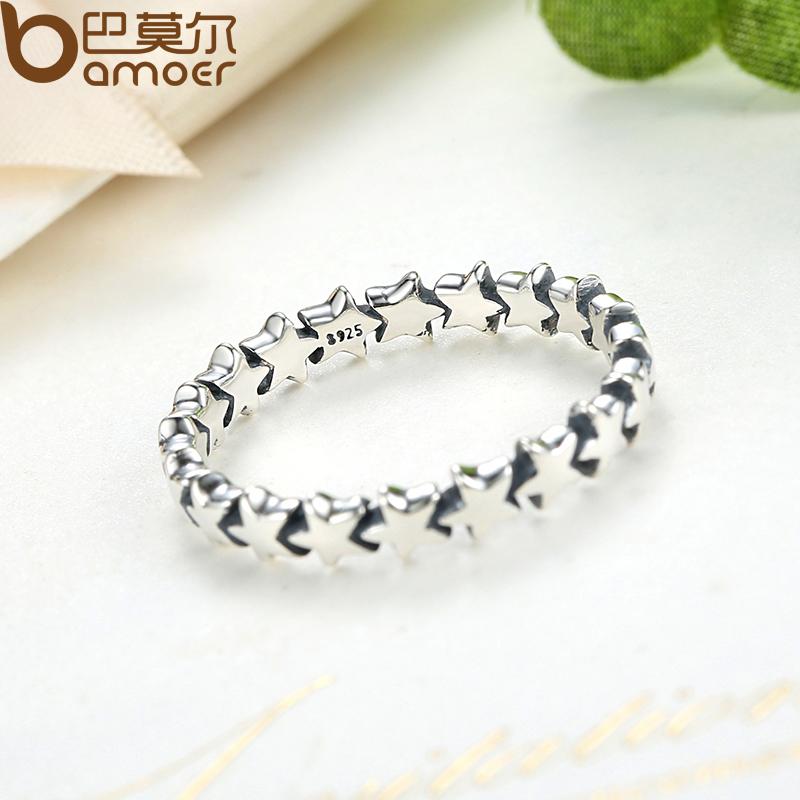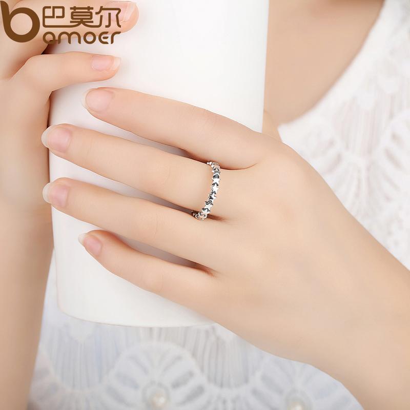 BAMOER 2020 HOT SALE Silver 925 Star Ring For Women Wedding 100% 925 Sterling Silver Stackable Finger Ring Jewelry PA7151