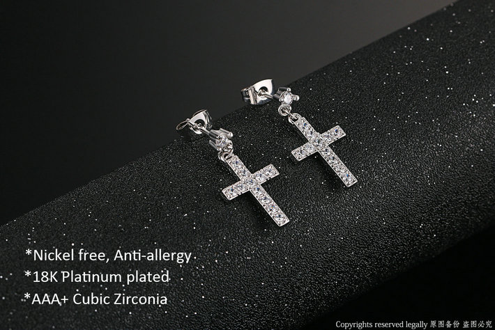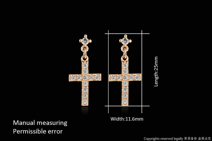 Cubic Zirconia Cross Drop/Dangle Earrings Rose Gold Silver Colour Fashion Jewelry For Women Wholesale Punk Style DWE328