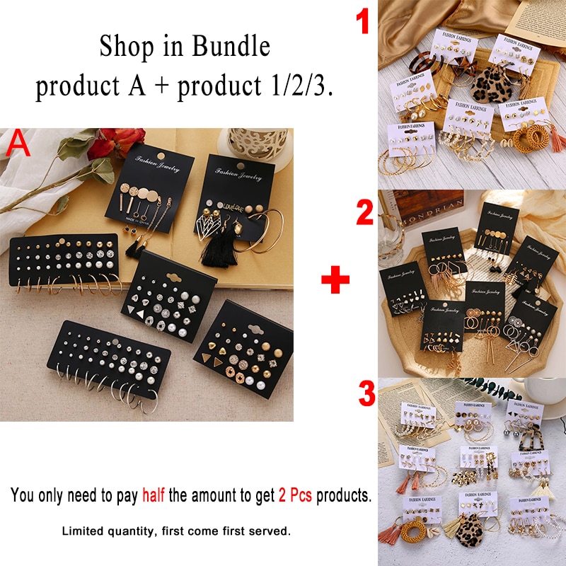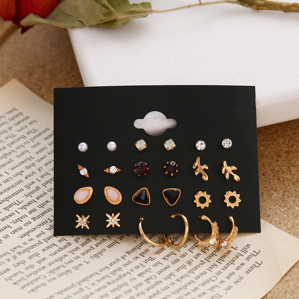 EN 12 Pairs Flower Women’S Earrings Set Pearl Crystal Stud Earrings Boho Geometric Tassel Earrings For Women 2020 Jewelry Gift