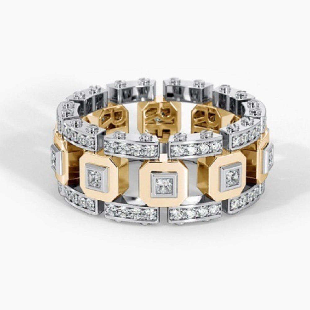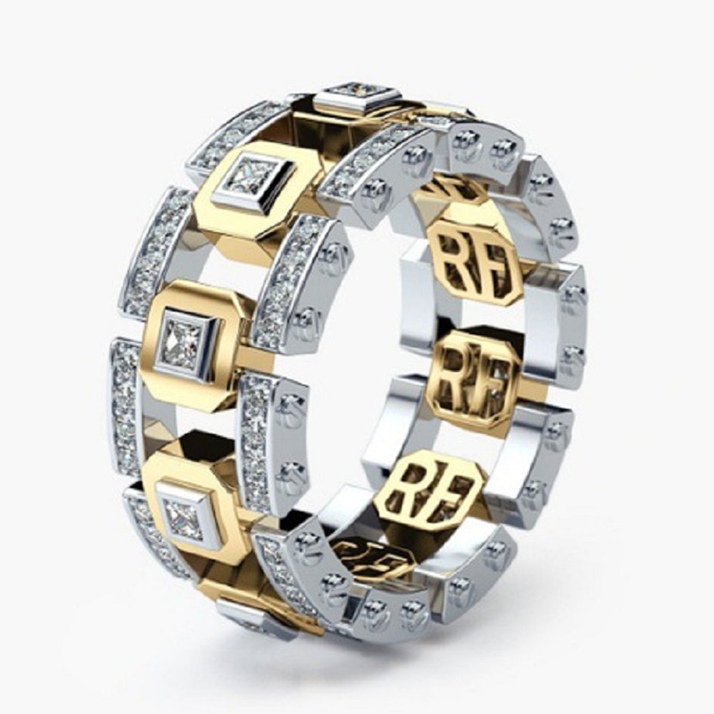 Fashion Lovers Howllow Crystal Rings With Two Color Plated Copper Technology Women Accessories Jewelry Ring For Party