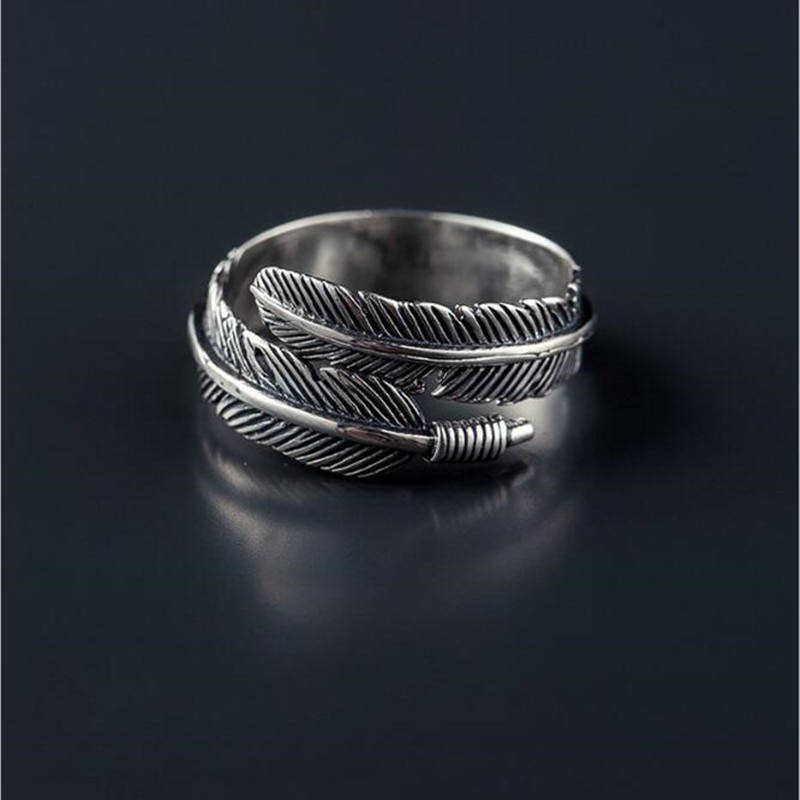 Retro High-quality 925 Sterling Silver Jewelry Thai Silver Not Allergic Personality Feathers Arrow Opening Rings SR239