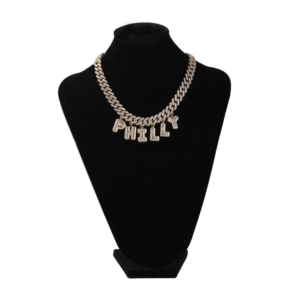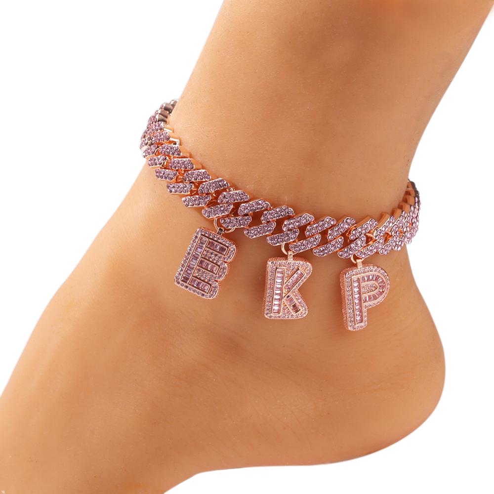 THE BLING KING Hiphop DIY Statement 12mm S-Link Miami Cuban Necklace Baguette Letter Pendant ankle Jewelry Wholesale Own Style